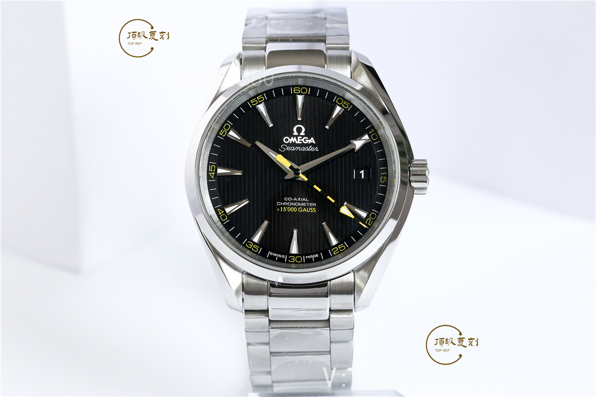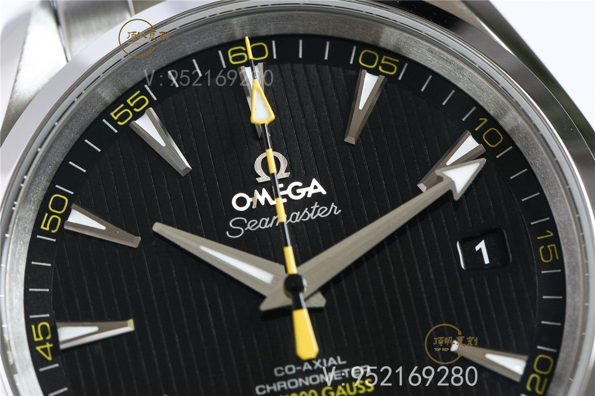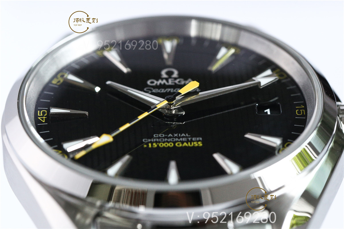 外觀設計與配色 大黃蜂版以其鮮明的黑黃配色,讓人聯想到蜜蜂的尾部,這種獨特的設計在海馬150系列中顯得尤為突出。無論是指針還是外圈數字,都采用了黃色點綴,為腕表增添了一抹亮色。盤面的豎向紋路和陶瓷材質的清晰度,都展現了VS廠在制作上的精細工藝。