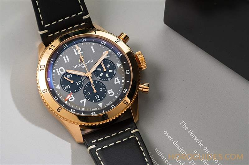 既然要以戰機為靈感,選擇的機種就要夠具代表性。百年靈首先取樣的是知名度最高、被譽為歷史十大戰機排行第一的P-51 Mustang野馬戰斗機。P-51被認為是二戰時期綜合性能最出色的戰機,性能強悍、火力充足、擁有傲人戰績,而且服役期間長、量產數量多,是非常多戰機迷心目中的名機。這樣一代名機的特別版腕表,是以經典黑色面盤搭配復古的仿舊米色夜光時標與指針、金棕色皮革表帶。為了致敬經典的野馬戰斗機,除了不銹鋼版本,另外還有一款紅金表殼版本,僅在官網以及專賣店銷售,搭配煙灰色面盤與黑色皮革表帶,同時也是此次新款唯一的貴金屬款式。