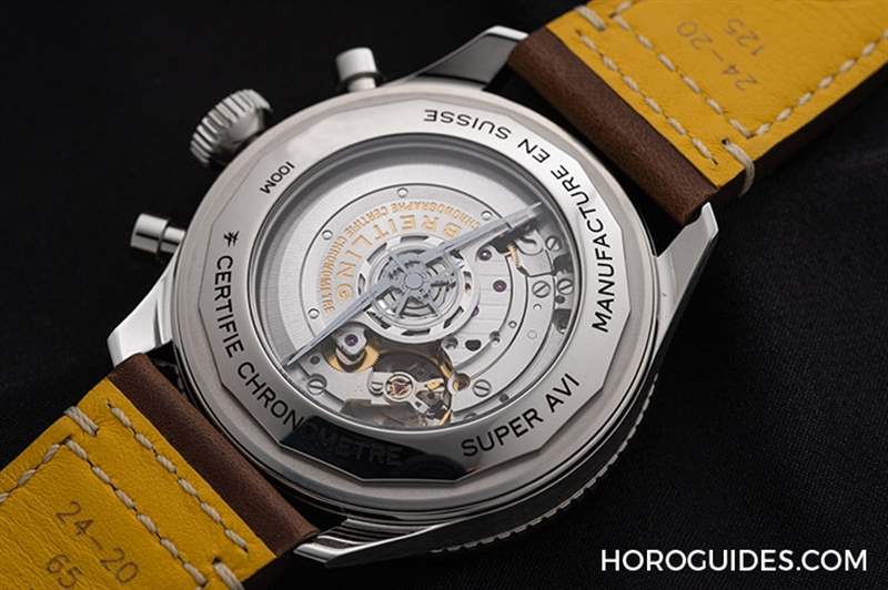 新款Super AVI航空計時碼表特別版,設計靈感來自1953年「Co-Pilot」AVI Ref. 765航空計時碼表以及四架傳奇戰機。「AVI」是aviation的縮寫,而由于百年靈計時儀器的精準與可靠,就像是駕駛艙里的副駕駛員一樣,能夠提供出色的準確計時、扮演最佳的協助角色,因此獲得了「Co-Pilot」的稱號。2020年百年靈也有針對這款傳奇型號推出復刻表,當時復刻表的表徑為41.1毫米,不過此次新款則是增大至46毫米,成為一款外型粗獷、細節豐富,以現代角度重新詮釋機戰豪杰的現代腕表。