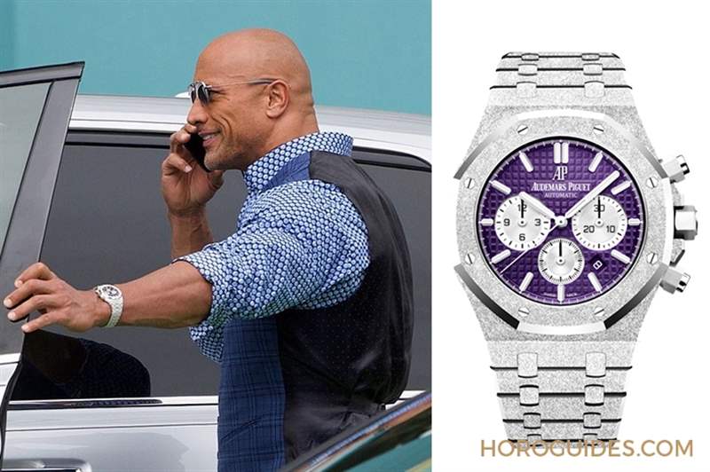 因應在不同電影作品里飾演不同的身份,巨石強森也會隨角色形象更換表款,例如在美劇《Ballers》(好球天團/欖球人生)里,他就更常佩戴愛彼或是勞力士。預計在2020年7月播出的HBO美劇《Ballers》(好球天團/欖球人生)第五季,巨石強森就被拍到在片場戴著愛彼的Royal Oak Offshore霜金計時碼表,不僅是近年新表,紫色表盤更是相當搶眼。而在《Ballers》其他季的劇照里據說還曾戴過ROLEX的水鬼王Sea-Dweller 126600。
