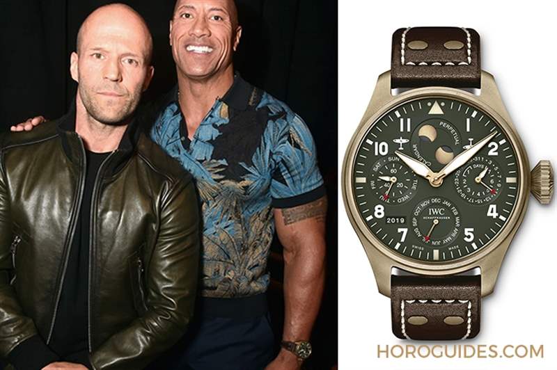 IWC也是巨石強森的愛牌之一。2019年他在電影產業大會CinemaCon演講時佩戴了一只IWC Big Pilot’s Watch的綠面青銅萬年歷;更早之前在《Jumanji:The Next Level》(野蠻游戲:全面晉級/逃出魔幻紀:霸氣升呢)的柏林發表會上,也戴了IWC的葡萄牙萬年歷玫瑰金灰面款。