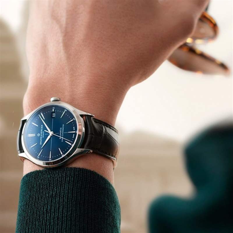 Clifton Baumatic系列推出后大獲市場好評,這枚漸變藍面的Clifton Baumatic感覺更時尚,中央十字線為腕表注入性格細節,男士戴來襯西裝絕對一流。至于內涵方面亦有一定水準,腕表獲COSC瑞士天文臺認證,確保每日誤差為+4/-6秒之內;同時配備實用的5天動力儲備。就算放下腕表三數天,再戴上手依然識行識走,省下重新調校日期及時間的工夫。