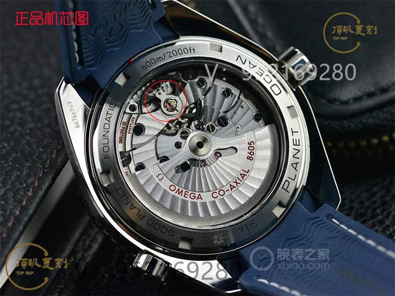 底蓋采用藍寶石水晶玻璃底蓋,透過透明的底蓋,我們可以清楚看到機芯內部的齒輪運轉,VS廠歐米茄海洋宇宙600米GMT搭載VS廠自產8500一體機改8605同軸自動上鏈機芯,VS廠不惜成本采用瑞士進口定制的避震器,機芯外觀、構造上跟正品保持一致,并且真實功能以及擁有卓越的走時精度和走時穩定性,實現GMT雙時區顯示功能。