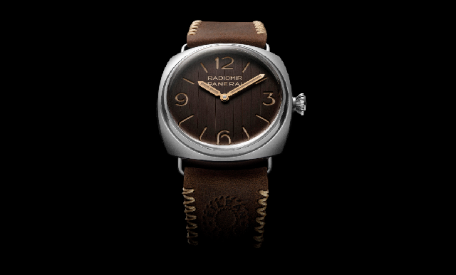 Radiomir Eilean新款腕表表盤運用斑駁的棕色紋理, 搭配條紋樣式,令人聯想到帆船的柚木甲板。表背和表帶上均鐫刻「Eilean 1936」字樣,重現了Eilean號帆桁上的標記。表殼左側以雕刻工藝刻畫出同樣繪于船身的龍紋徽章。皮革表帶材質產于沛納海發源地義大利托斯卡尼大區,其米色點綴縫線靈感源自Eilean號桅桿上的帆繩。這一縫線工藝完全由手工制成,確保表帶能承受嚴苛環境的挑戰,并兼具美感。