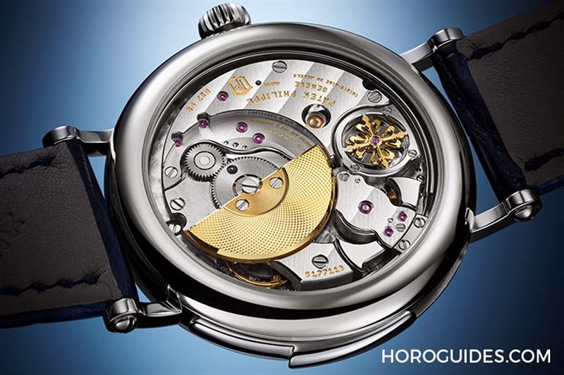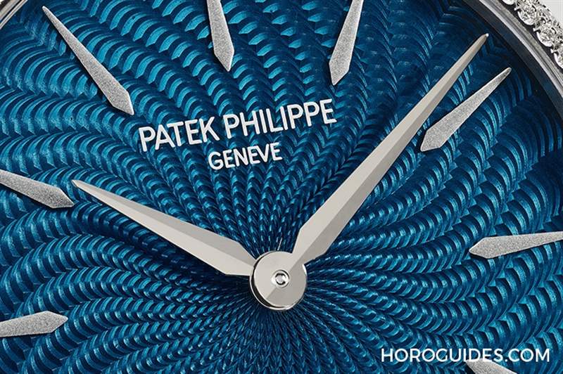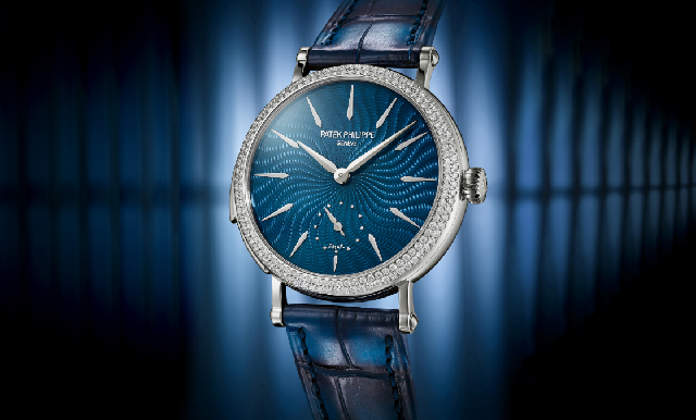 流麗出眾的表面則是機(jī)刻雕花與琺瑯二大手工技藝的結(jié)合。金質(zhì)表面底板先以手工綴以交錯(cuò)渦形飾紋,紋樣靈感來(lái)自編號(hào)992/137G-001、2019年的「暹羅斗魚(yú)」懷表;接著運(yùn)用透明琺瑯稀有手工技藝,在表面添上深藍(lán)色透明琺瑯,足以透現(xiàn)底部裝飾,清晰可見(jiàn)。白金矛形時(shí)針和分針設(shè)計(jì)優(yōu)雅,色彩鮮明亮麗,在表面上格外出眾。