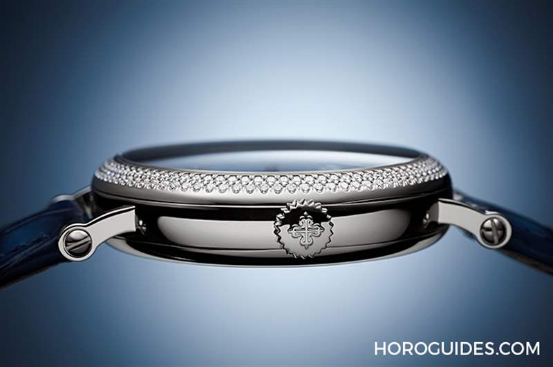 編號(hào)7000R-001 Ladies First三問(wèn)腕表于2011年至2017年登場(chǎng),搭配玫瑰金表殼和乳白色表面。如今品牌以最新精巧白金款式取代上述時(shí)計(jì),把表殼直徑稍為增大,并選用藍(lán)色大明火透明琺瑯表面及鑲鉆表環(huán)。