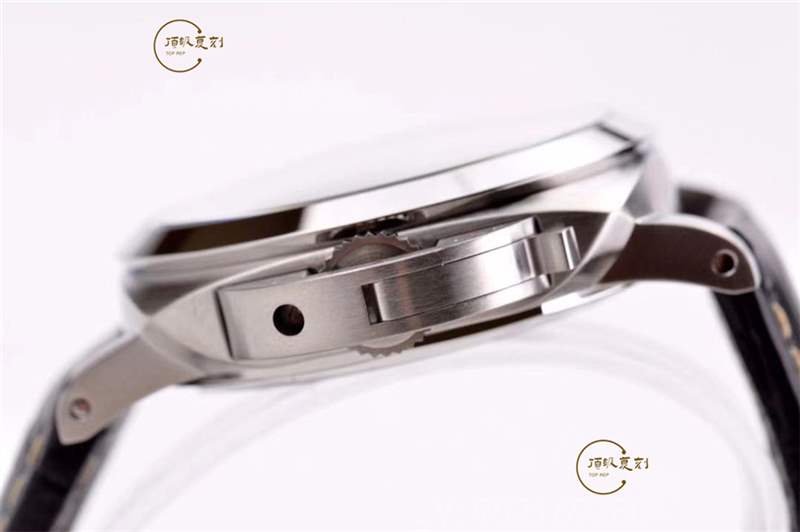 表帶:表帶是區分真假的重要依據,VS廠沛納海1312的表帶采用的是牛皮表帶,外觀上很難看出真假,但是材質不同,正品為鱷魚皮帶,所以比較柔軟,復刻的比較僵硬,不過復刻的車縫線以及背面的字體打印都規整。表帶結構為快拆式,針扣拋光打印跡。國內可以作出與正品一致的鱷魚皮帶,柔軟細膩,不過成本太高,即使批量出廠也要千元左右,這就是為啥一條真品的表帶三四千的價格的原因。