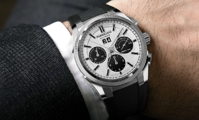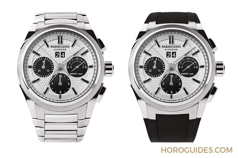 全新Tondagraph GT銀黑精鋼款腕表展現設計上的突破,前作所運用的橙色細節設計已被白色的高對比度元素所取代。帕瑪強尼首席執行官Guido Terreni先生表示:「通過這款全新腕表,我們希望突出黑色小表盤和銀色表盤之間的視覺對比。刪除之前產品中的橙色元素,令腕表獲得一種更純粹和持久的美感。」