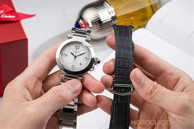 現在到2020結束前,如果你有之前Pasha C的款式的話,卡地亞也有提供免費的保養服務,你可以把那個表帶來給我們表店,我們幫你送到卡地亞,它可以免費的幫你整理這只表款。我剛戴的是41mm尺寸的,這邊也有35mm的,35mm這款是K金的,當然K金配上皮帶整個感覺就變成比較優雅一點、比較傳統一點,更有卡地亞的Feel,老實講這個35mm我覺得男生戴也很適合,有時候K金這種比較精致的款式,反而尺寸小一點的感覺會更好,如果有要選的話,這絕對會是我考慮的表款之一。
