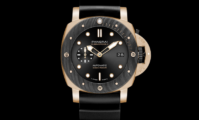 這是沛納海第一次結(jié)合兩種創(chuàng)新材質(zhì)-Goldtech TM紅金和Carbotech TM碳纖維,帶來嶄新作品Submersible Goldtech TM Orocarbo腕表。這只表徑44mm的新作,表殼以沛納海特有的Goldtech TM紅金打造,這種材質(zhì)采用了黃金及其他貴金屬,內(nèi)含鉑金以及較高比例的銅組成的特殊合金,顏色濃郁,不易氧化。表圈、表冠和表冠護橋鎖桿等功能性組件,則是采用創(chuàng)新材質(zhì)Carbotech TM碳纖維制作,該物料由彼此交疊的碳纖維薄層定向交替排列,在高壓條件下與一種新型聚合物結(jié)合,一公分有七層。