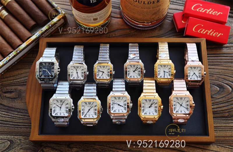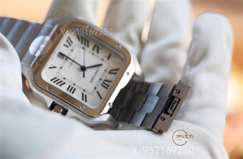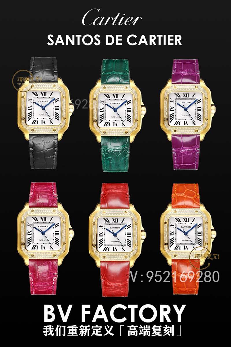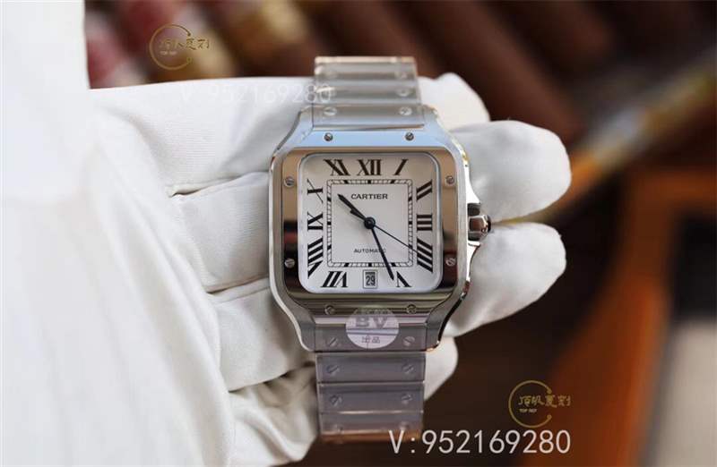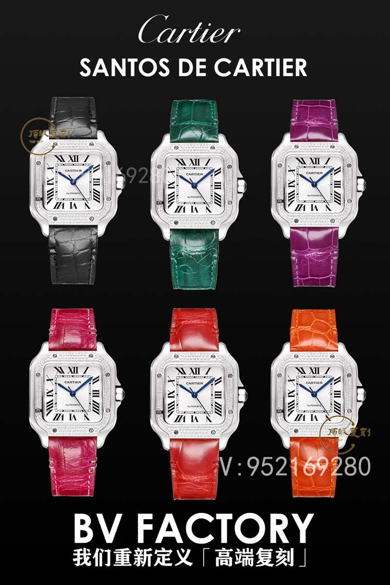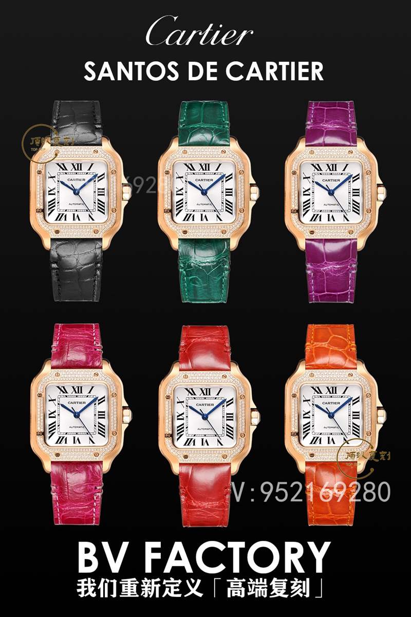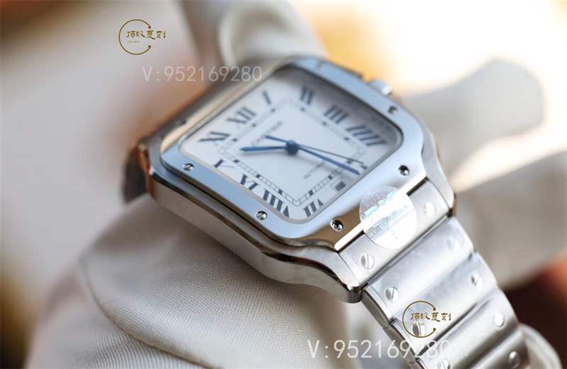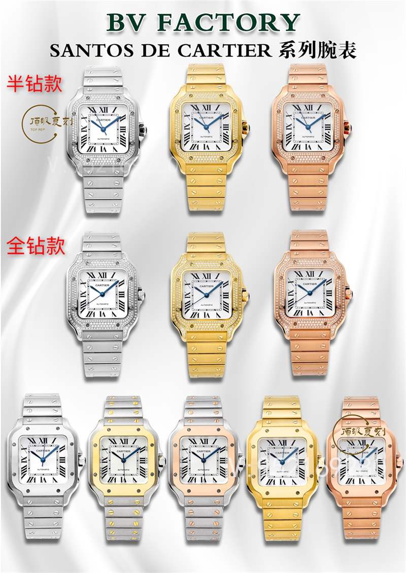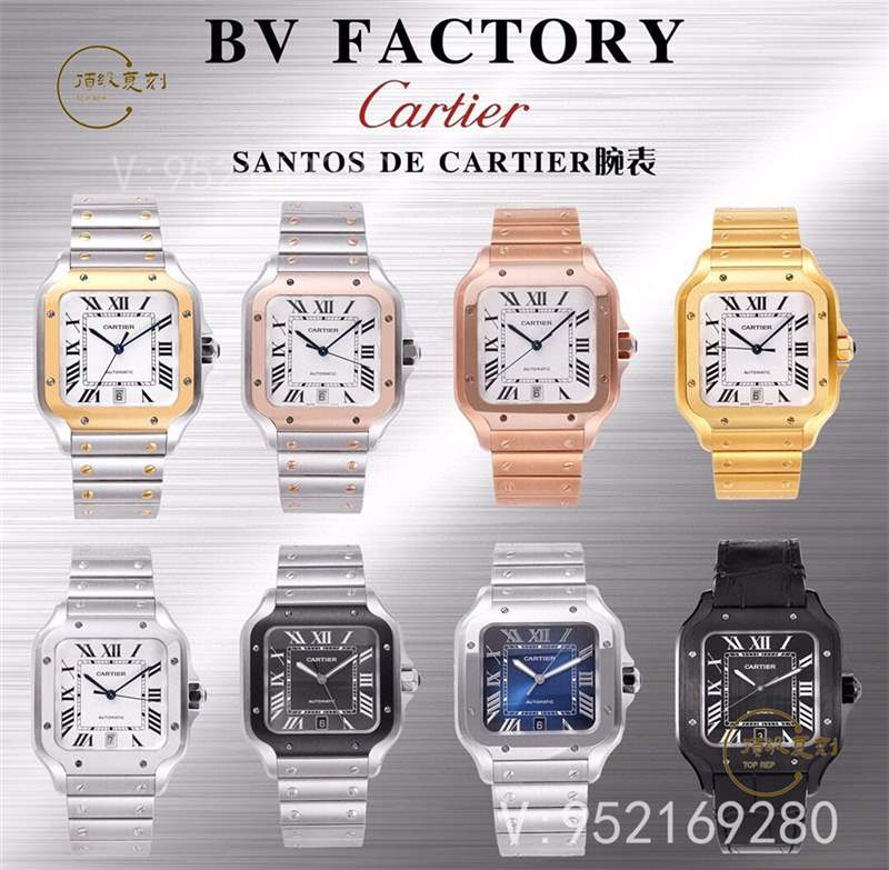 BV工廠的卡地亞山度士系列產品是2019年4月開始投放市場,最開始的時候是工廠負責人購入大號鋼帶款式開始一比一設計開模具,拆解了所有的零配件比如指針、字面、內墊、表扣、鏈節、鏡面、各部位螺絲等等,按照原版一比一開設模具,當時工廠老板的意思是這款手表是可以裝配正品機芯,不過是二手機芯,不過價格昂貴,一般也沒有表迷會去配置。此款系列的手表可以說是BV工廠打響市場名氣的表款,工廠不遺余力的推出了所有顏色的同款型號,同時工廠于7月份購入中款正莊后又相繼研發了各種型號的女款山度士,在山度士全系列的表款復刻上可以說是先行了一步,截至到目前位置,此款手表四大競爭對手分別是V6工廠、KOR工廠、GF工廠以及BV工廠。四家產品質量相差不大,當時目前論專注程度,BV工廠拍第一,V6工廠拍第二,其他兩家此款系列手表產品結構單一,在系列上不具備竟爭力,在同款產品上,一旦專注的工廠再度升級將甩開其他工廠的競爭。至于與其他工廠的對比區分筆者后續段落再做介紹,首先,我們來了解以下BV工廠此款腕表的做工評測以及系列圖片展示。