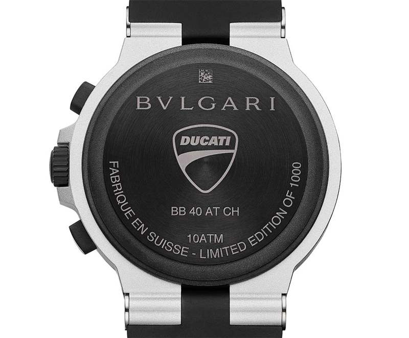材料的選擇也有助于該系列的美學。因此,直徑40毫米的鋁制表殼完全防水至100米深,并配有黑色橡膠表圈,上面裝飾著“Bulgari Bulgari寶格麗”雕刻,按鈕和鈦金屬表冠,并飾有鉆石光涂層(DLC)。表殼還配有橡膠腕帶。至于機械裝置,數據、時間間隔測量值以及4:30的孔徑日期均由BVL 130機芯提供動力。這種自動上鏈機制可提供超過42小時的自主權。為了突出腕表的獨特性,表底蓋飾有杜卡迪標志和序列號。這款限量版包裝在與包裝盒相同的材料制成的特殊展示盒中。
