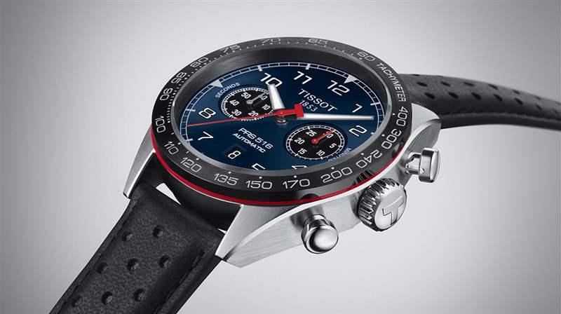 自1965年以來,天梭的PRS車型與賽車運動有著密切的聯系。該品牌作為官方計時員參與了一系列比賽,從未停止推出升級,擁有高性能,精心制作的口徑,完全符合他們的時間。因此,2022款PRS 516自動上鏈計時碼表的靈感來自這個旋轉的世界。黑色或旭日藍色表盤上的時針和分針懸停在一小時章節中,并帶有大阿拉伯數字。所有這些元素都涂有Super-LumiNova?涂層,即使在黑暗中也能確保出色的可讀性。計時是在兩個形狀像活塞的按鈕的幫助下完成的。這在直接驅動和3點鐘位置設置的30分鐘計時盤上記錄下來。9點鐘位置的小秒針完美地平衡了雙七分顯示的構圖。固定的陶瓷表圈頂部是測速刻度,突出了運動的外觀。