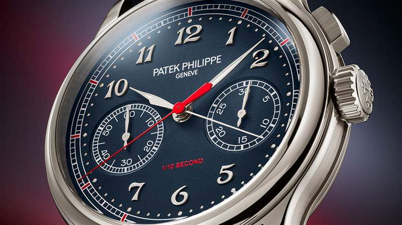十二秒。這就是Silinvar?制作的直驅(qū)裝置對表盤進(jìn)行全面革命所需的時間。然而,這種材料的選擇并非沒有意義。除其他品質(zhì)外,這種硅衍生物非常輕巧且具有抗磁性。更重要的是,它的設(shè)計(jì)以幾何形狀為中心,具有出色的空氣動力學(xué)性能。在新的百達(dá)翡麗 1/10千第二單體計(jì)時碼表 5470P-001,1/10的運(yùn)動千當(dāng)2點(diǎn)鐘設(shè)置的按鈕被觸發(fā)時,秒針流動得非常平穩(wěn)。在靛藍(lán)色表盤上,通過另一個中央指針讀取測量的時間間隔,通過另一個中央指針讀取秒針和位于3點(diǎn)鐘位置的30分鐘計(jì)時盤。