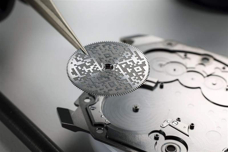 “你在意大利設計和工業設計史上經常看到的是將限制變成機會。所以,我們看到發條盒很大,我的制表師問我想要什么樣的飾面,我們嘗試了幾種選擇,這些選擇都與厚度無關。我想要一個開放式工作桶,因為手表超輕且技術含量高。但是槍管和玻璃杯靠得非常近,一點點油滴都可以碰到它。我想要某種銘文(perlage 和 snailing 與 Octo DNA 不符),但這是不可能的。所以我們選擇了二維碼。”