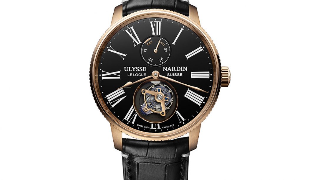 Marine Torpilleur陀飛輪大火腕表配備皮革表帶,搭配玫瑰金折疊式表扣。與所有雅典表時計一樣,表殼在側面單獨編號。