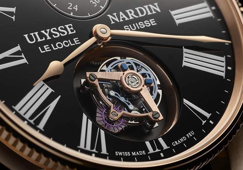 在19的末尾千世紀,航海計時器是前往長途目的地的船只必不可少的設備。它們在船上的可用性有助于導航,從而能夠在公海上進行精確定位。其中許多都帶有雅典表的簽名。制造商在生產陀飛輪方面表現出色。為了紀念這些擁有百年歷史的技藝,該制表師推出了限量版175款時計,將它們結合在一起:Marine Torpilleur陀飛輪大火輪。正如這款非凡時計的名字所暗示的那樣,其黑色表盤由“Grand Feu”琺瑯制成。該系列的標志性分期位于表盤上。纖細的時針和分針指向一個點綴著大號羅馬數字的小時圈。動力儲存指示器位于12點鐘位置,而經典的小秒針則由設置機制取代,位于6點鐘位置。