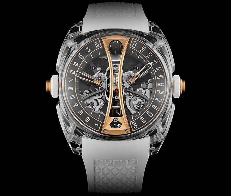 直徑44毫米的墊形藍(lán)寶石水晶表殼為組裝有344個(gè)組件的復(fù)雜機(jī)芯提供了優(yōu)雅的設(shè)置。這種手動(dòng)上鏈機(jī)芯可以從各個(gè)角度欣賞。半透明的表底蓋使兩個(gè)相關(guān)的氣缸可以同時(shí)看到。一旦發(fā)條完全上鏈,Klepcys垂直鏤空陀飛輪藍(lán)寶石將擁有超過(guò)100小時(shí)的動(dòng)力儲(chǔ)備!