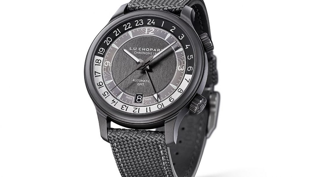 L.U.C GMT One Black僅售250枚,搭配黑色橡膠表帶,搭配織物設計,搭配扣針扣。