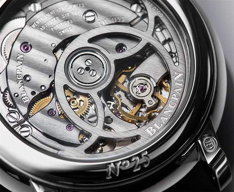 搭載1153型自動上鏈機芯,提供驚人的4天動力儲備,金屬表殼的圓形側面也裝飾著耀眼的寶石,巧妙地覆蓋著表圈、表耳和表冠,總重達2,073克拉。覆蓋表盤的白色珍珠母貝的璀璨光芒凸顯出寶石的光芒。這個彩虹色圓盤上有一個應用小時圈,由彎曲的阿拉伯數字組成,并由一圈鉆石突出顯示。中央是鏤空葉形時針和分針,秒針的配重顯示寶珀B腕表的輪廓。