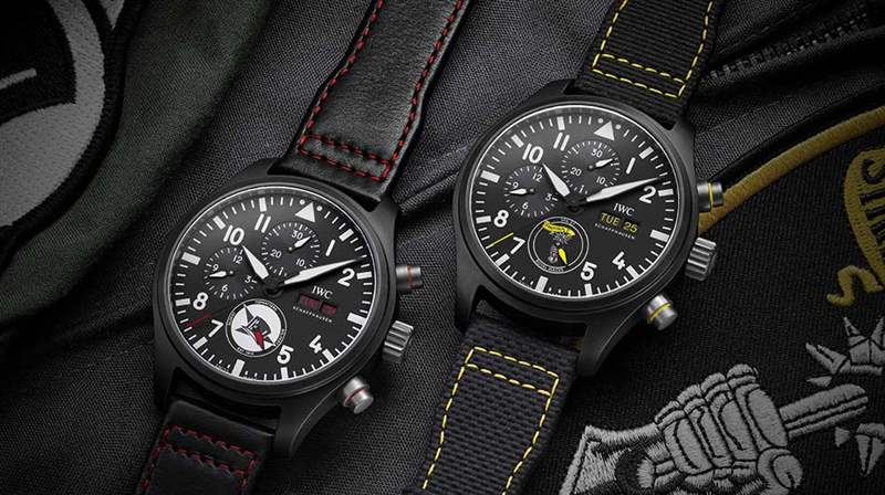 這三款時計的年產量限制為每款500枚,每款腕表都有不同的單元。有攻擊戰斗機中隊27或VFA-27的“皇家狼牙棒”,駐扎在日本附近;駐扎在加利福尼亞州的第14攻擊戰斗機中隊的“Tophatters”;以及著名的“藍色天使?”雜技巡邏隊。每個外殼均采用黑色或藍色陶瓷加工而成,直徑為44.5毫米,厚度為12毫米。表冠采用旋入式表冠和按鈕,由IWC萬國表開發的輕質耐用材料Ceratonium?制成。鈦金屬表背上鐫刻著中隊標志:“皇家梅斯”的超級大黃蜂噴氣式飛機的輪廓,“Tophatters”的禮帽,以及“藍色天使?”的四重奏飛機。
