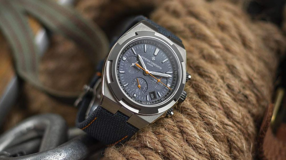 為了彰顯其運動個性,Overseas Dual Time “Everest”配有Cordura?紡織表帶,飾有橙色超縫線,并附有折疊式搭扣。盒子套裝還包括一條灰色橡膠表帶。此外,這件作品的制造質量符合日內瓦印記(Poin?on de Genève)的要求。