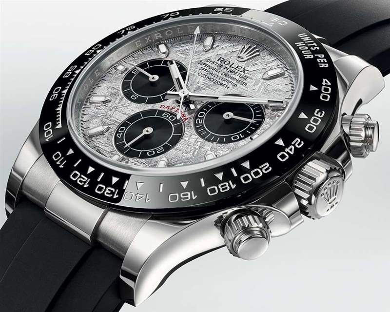 更獨(dú)特的Daytona今年展示了新的精致,因?yàn)樗捎昧苏滟F,優(yōu)雅的金屬表殼和直接從天空中心出來的表盤。