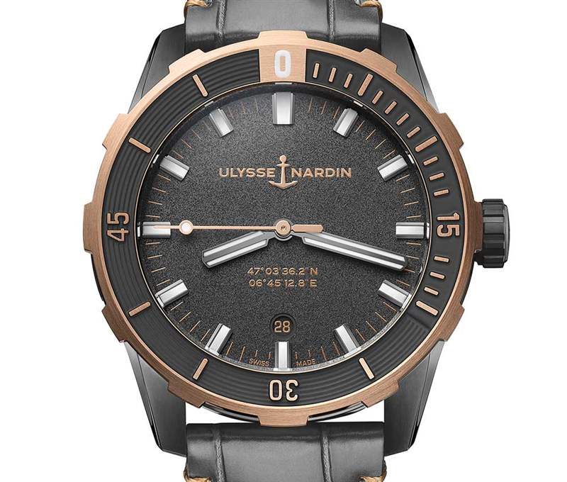 為了陪伴您的夏日,雅典表(Ulysse Nardin)通過兩款新款式來增強其潛水員系列,玫瑰金在最高點與太陽一樣溫暖。簡而言之,Diver 42在其單向表圈上擁有這種溫暖的貴金屬,并帶有灰色橡膠嵌件。它的存在使直徑42毫米的PVD精鋼表殼的單色層觀更加明亮,該表殼也呈灰色,噴砂表盤也采用相同的色調(diào)。這款腕表飾有鯊魚般的裝飾,搭配配套皮革表帶。與該系列中的其他型號一樣,這款潛水員由自動上鏈的UN6816機芯驅(qū)動。
