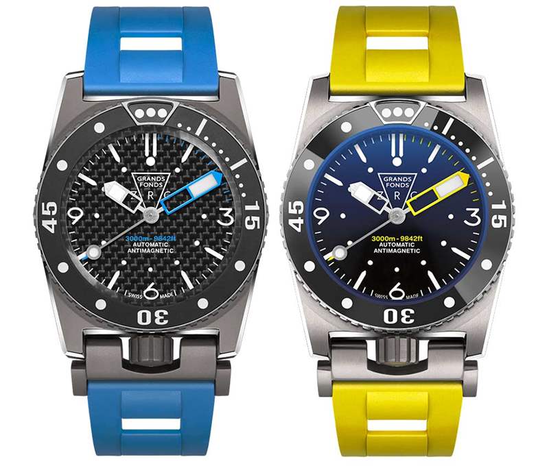 憑借其兩款 Grands Fonds 3000 Titanium?2021 復古款式,ZRC?開啟了其歷史上前所未有的篇章,其性能使日期與美學上具有吸引力。簡而言之,GF50686表款的啞光外觀與表殼的噴砂表面和黑色陶瓷表圈相得益彰。該套裝保護著采用真碳纖維制成的表盤。有史以來第一次!舒適的橡膠表帶上飾有藍色的劃線,分針和直驅(qū)的尖端凸顯了這個版本的運動特性。這款令人難以置信的太陽能GF50698參考車將表殼與緞面拉絲拋光表面相結(jié)合,表面裝飾著漸變色調(diào),中央的黑色在邊緣處轉(zhuǎn)向藍色。這一次,表圈令人眼花繚亂。黃色在表帶、分針和“棒棒糖”風格的中央直驅(qū)上脫穎而出。
