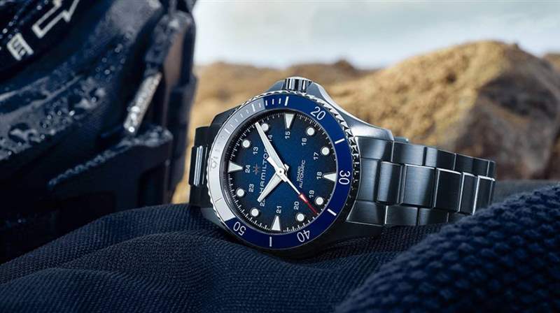 增強防水性,陶瓷制作的單向旋轉表圈,提高易讀性:Hamilton的潛水員邀請我們在陸地上,當然還有海上拓寬視野。
