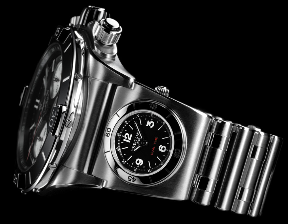 第二時區模塊嵌入“Rouleaux”精鋼表鏈中,搭配折疊式表扣,搭載61型石英機芯。其電池壽命為60個月的電池設置在26.1 mm的膠囊內。整個超級計時腕表 B01 44 UTC 防水深度達 200 米。