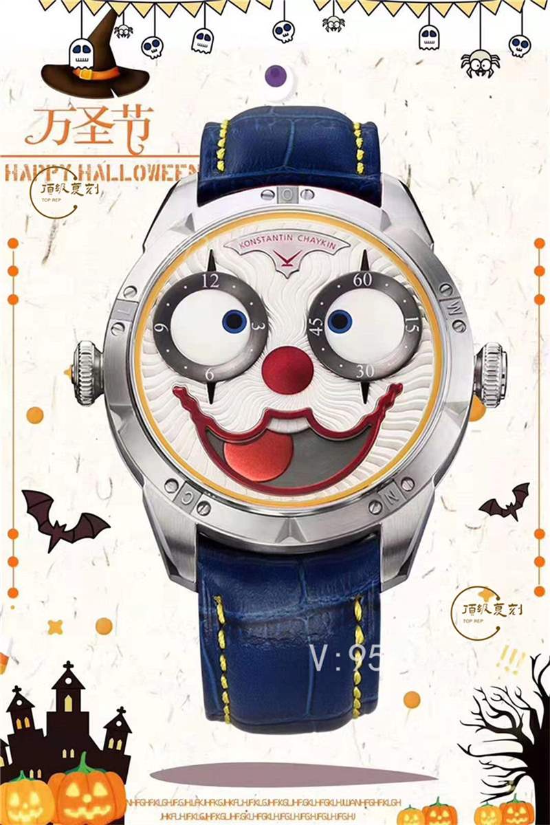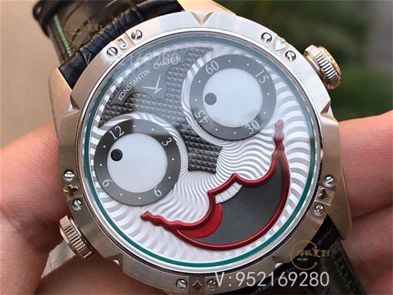在尺寸方面,康斯坦丁.切金俄羅斯小丑腕表表盤直徑42mm、厚度為11.8mm,適中的尺寸適合絕大部分表友佩戴,尤其是新穎的外觀設計讓整個腕表呈現出一張活靈活現的小丑面容、并且隨著時間的流動而展現出不同的風趣表情,機芯KC采用了進口NH35A自動機械機芯、最大程度在確保功能對版的同時還有著非常優秀的精準走時和穩定性。