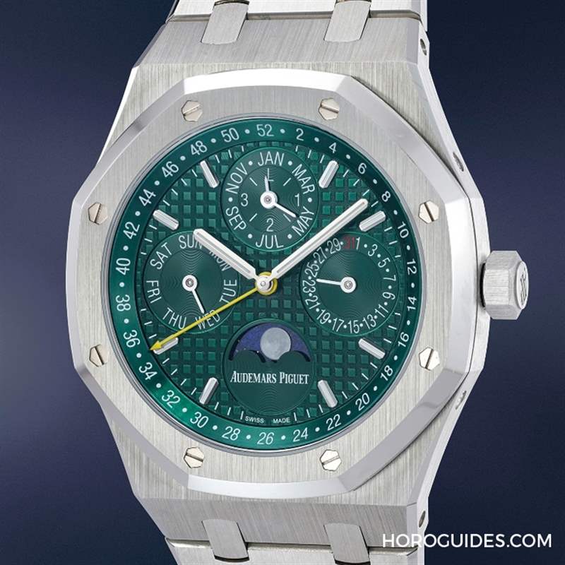 通常愛彼除了ROO計時特別版之外,二手行情坦白說屬于平平,不過這次出現了非常亮眼的例子,例如這款綠面的RO萬年歷是為香港譽一鐘表推出的特別版,限量50只,是地區、數量與店鋪的三重限量,難怪受到藏家追捧。